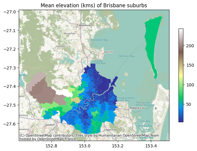 Zonal statistics: mean elevation of brisbane suburbs